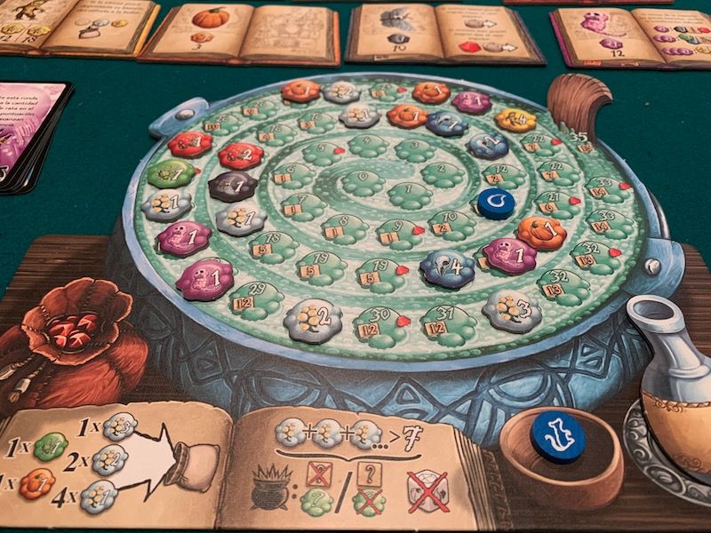 Cada jugador tiene su propia bolsa de fichas de ingredientes. Durante cada ronda, simultáneamente sacan fichas y las agregan a su caldera. Cuanto mayor sea el valor nominal en la ficha, más lejos se colocará en el patrón de remolino. Lleva tu suerte tan lejos como puedas, pero si agregas demasiadas bombas de cereza, ¡tu olla explota!